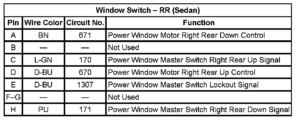 Window Switch - RR (Sedan)