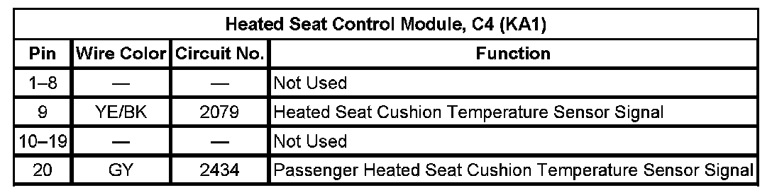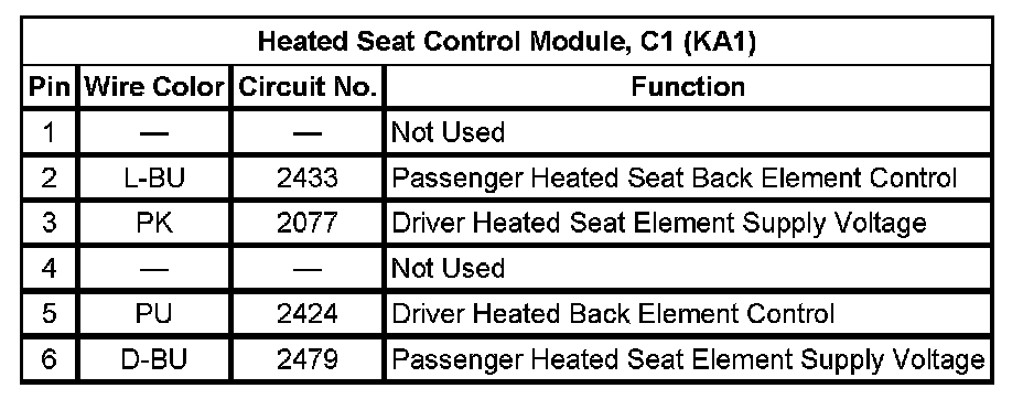 Heated Seat Control Module, C1 (KA1)