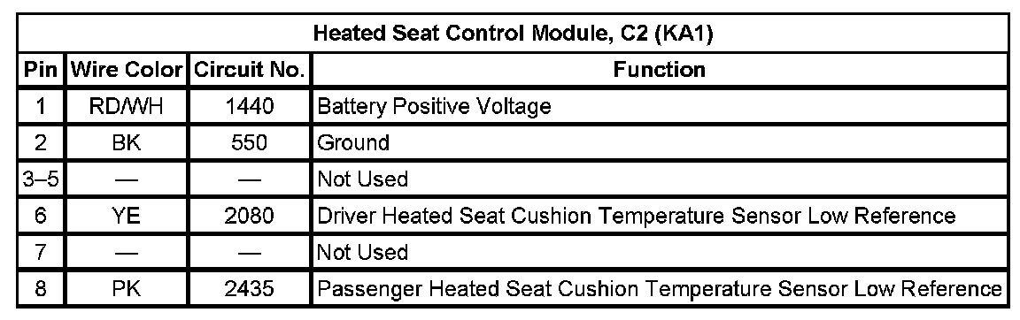 Heated Seat Control Module, C2 (KA1)