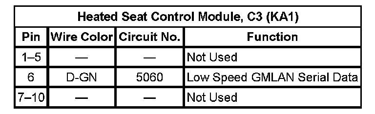 Heated Seat Control Module, C3 (KA1)