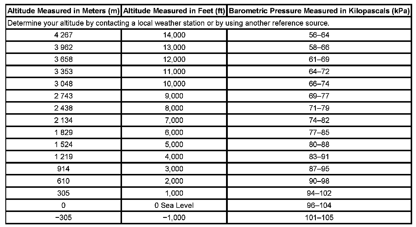 Altitude Versus Barometric Pressure