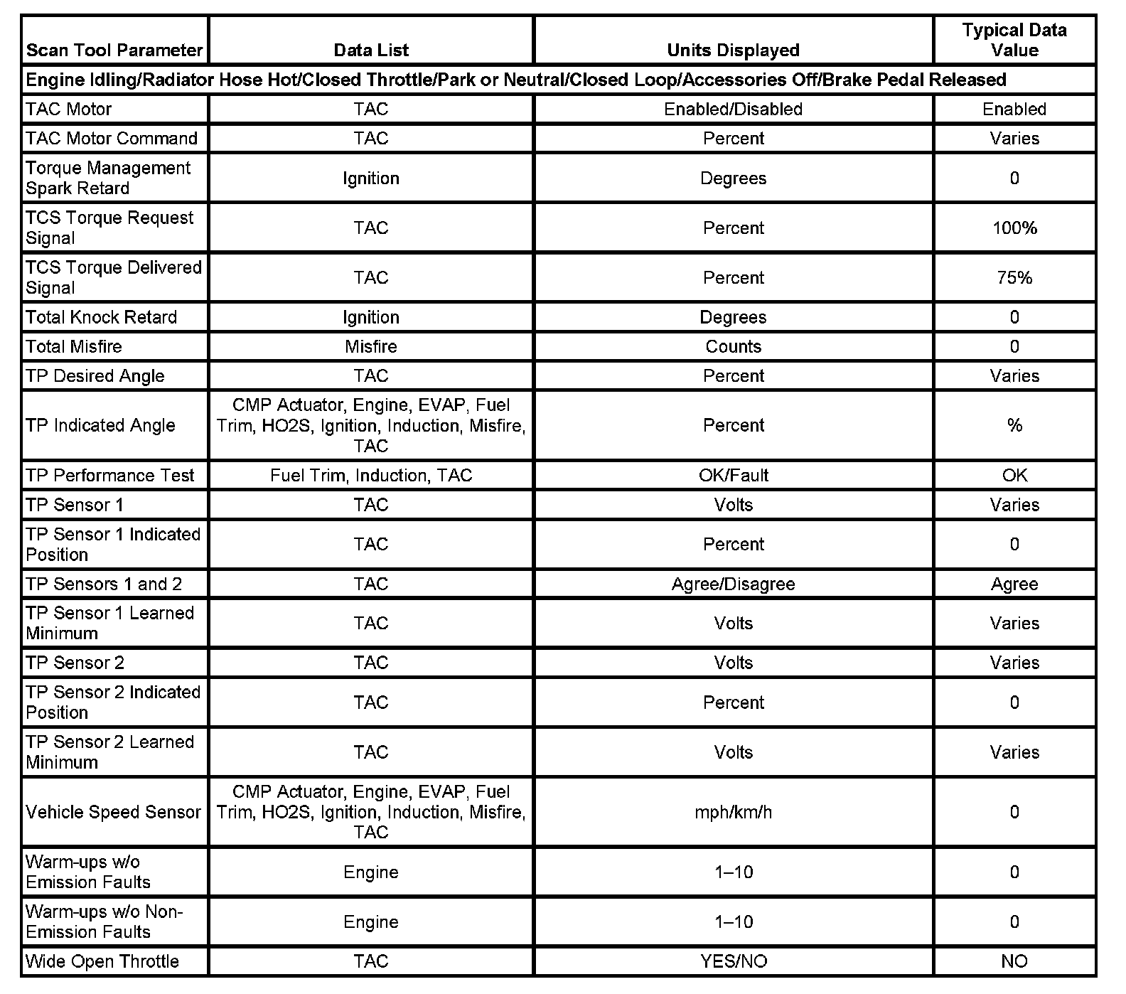 Only the parameters listed below are referenced in this service data for use in diagnosis. If all values are within the typical range described below, refer to Symptoms - Computers and Control Systems for diagnosis. - Symptoms - Engine Controls