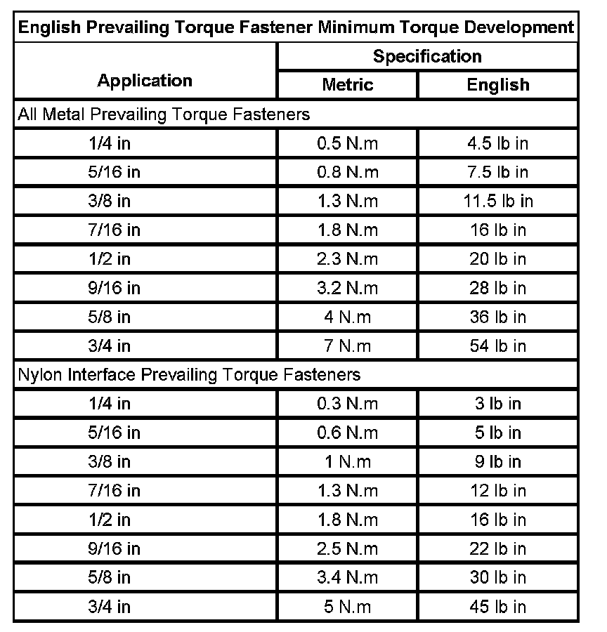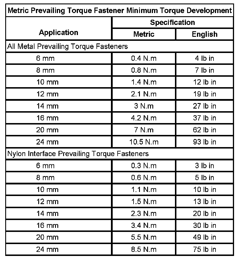 Prevailing Torque Fasteners