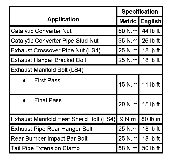 Fastener Tightening Specifications: