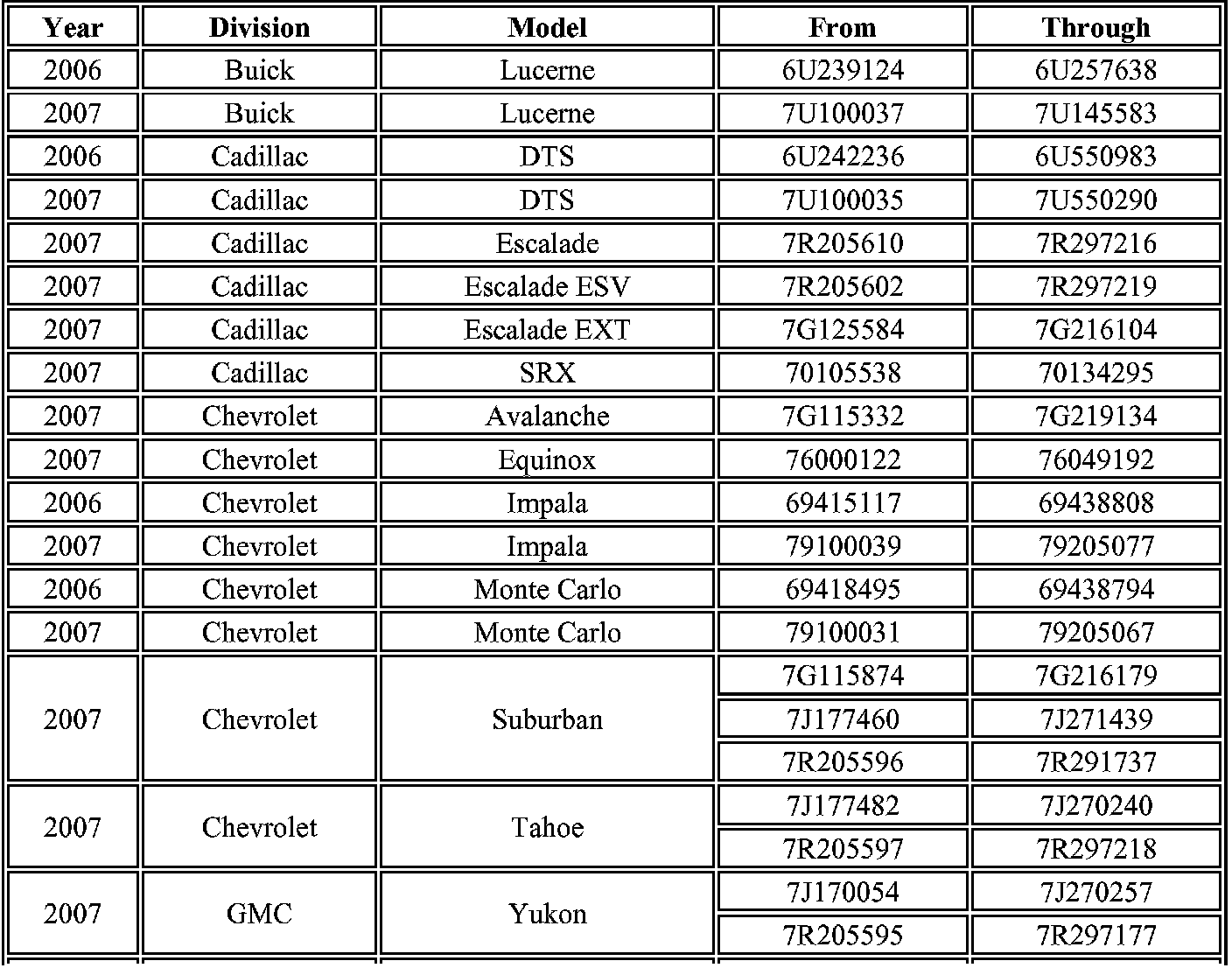 Dealers are to confirm vehicle eligibility prior to beginning repairs by using GMVIS. Not all vehicles within the above breakpoints may be involved.