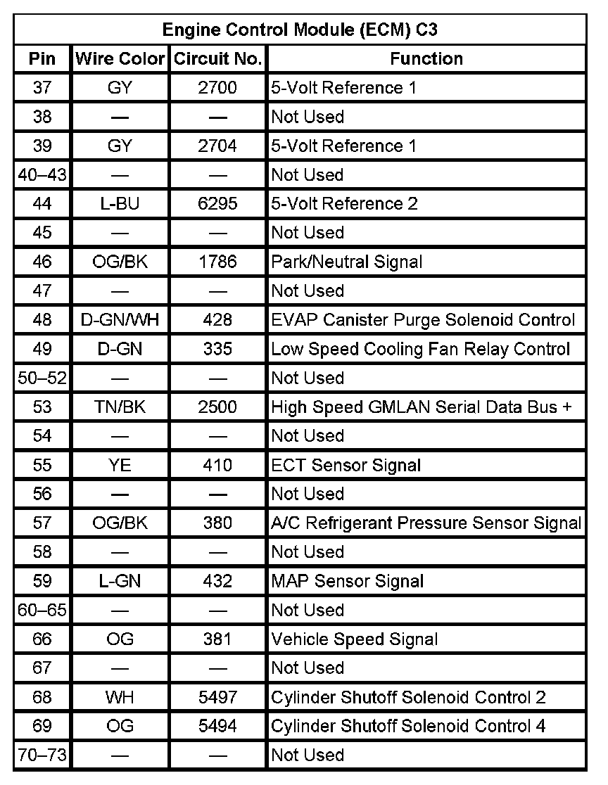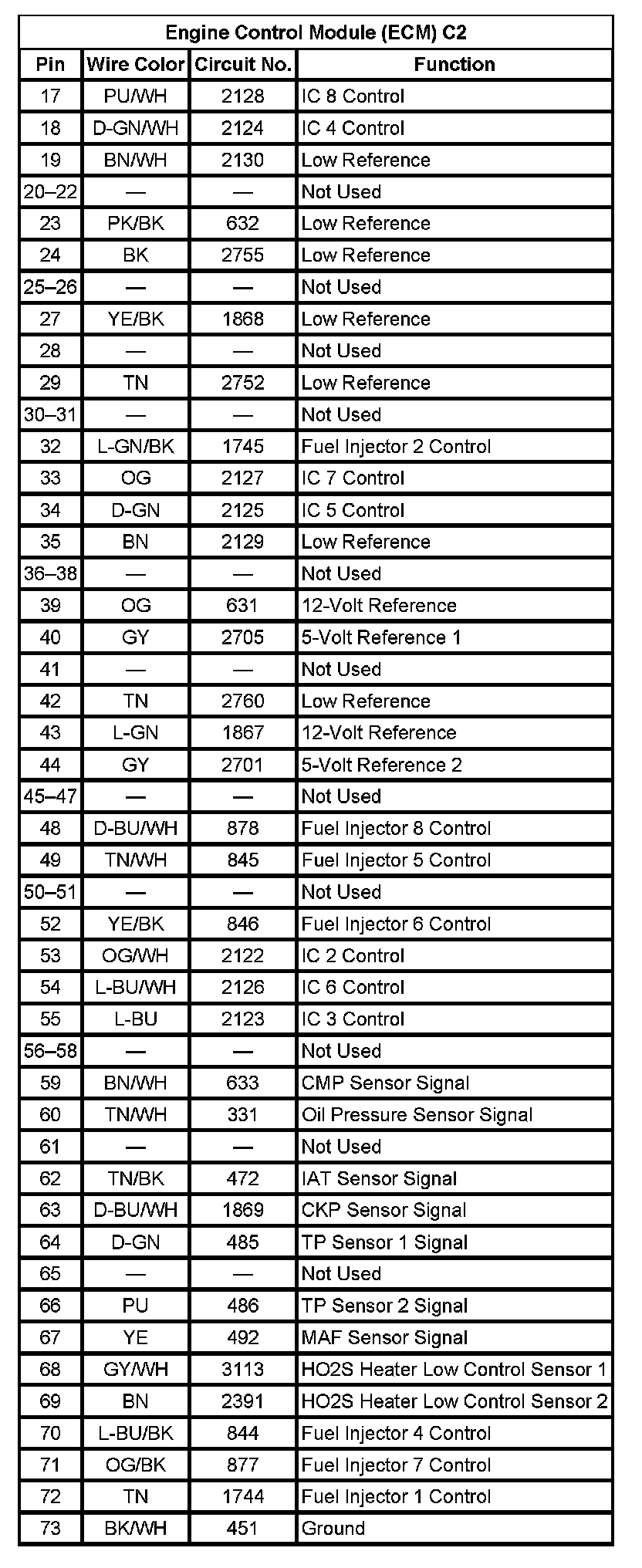 Engine Control Module (ECM) C2 (Pin 17 To 73):