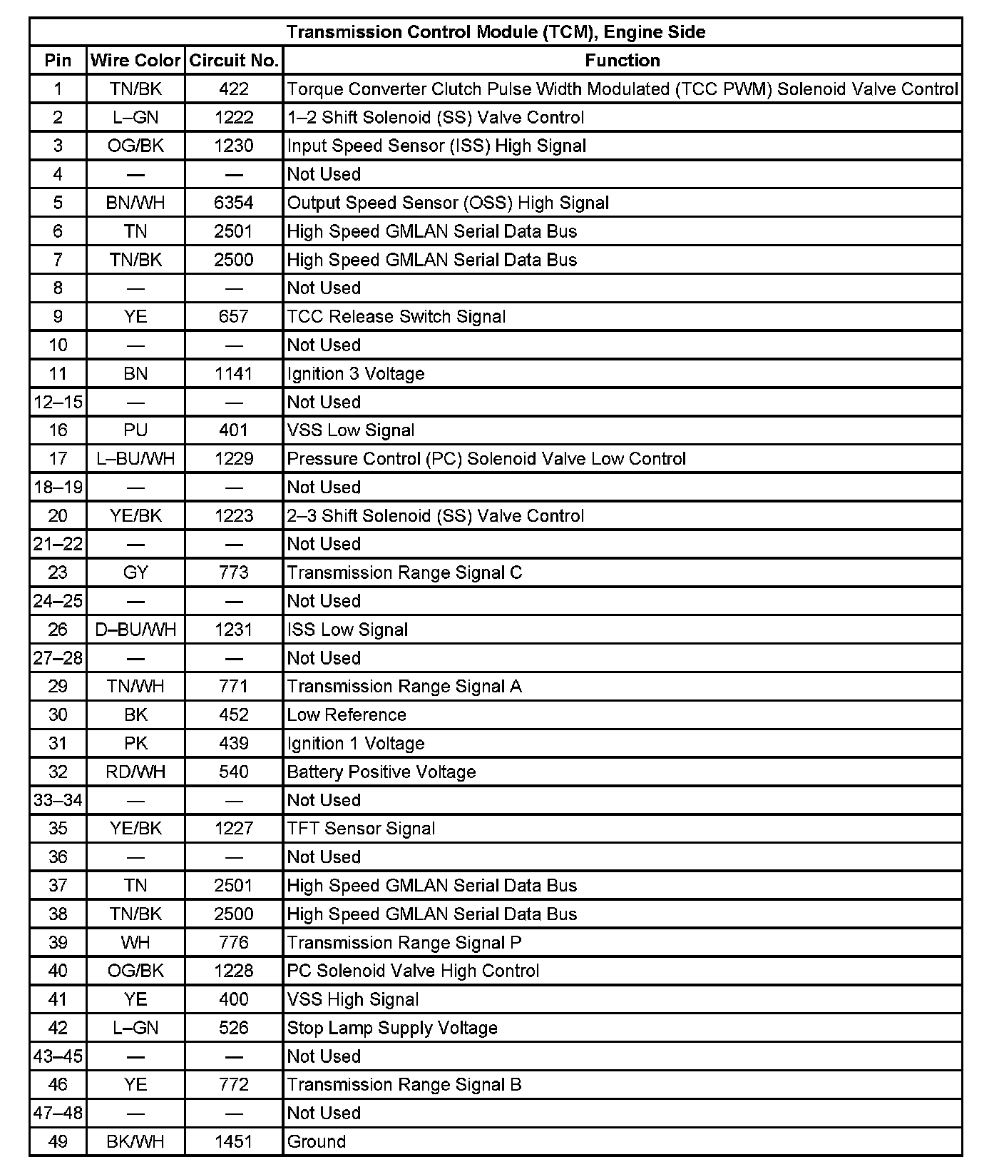Transmission Control Module (TCM), Engine Side