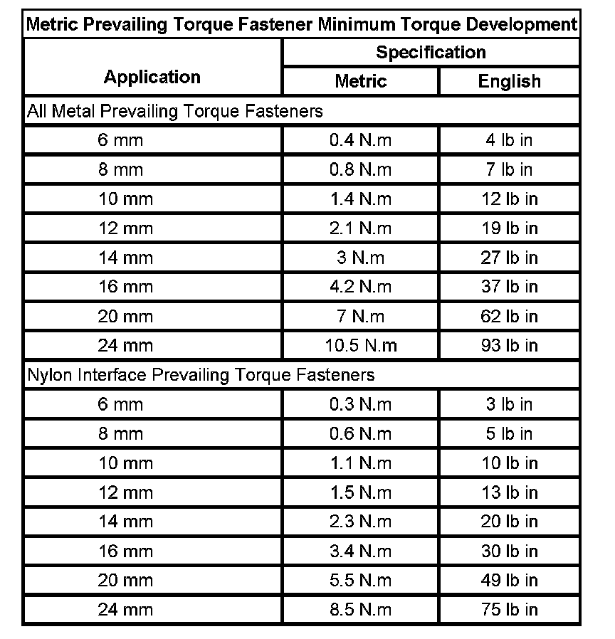 * The fastener develops the specified minimum torque against its counterpart prior to the fastener seating