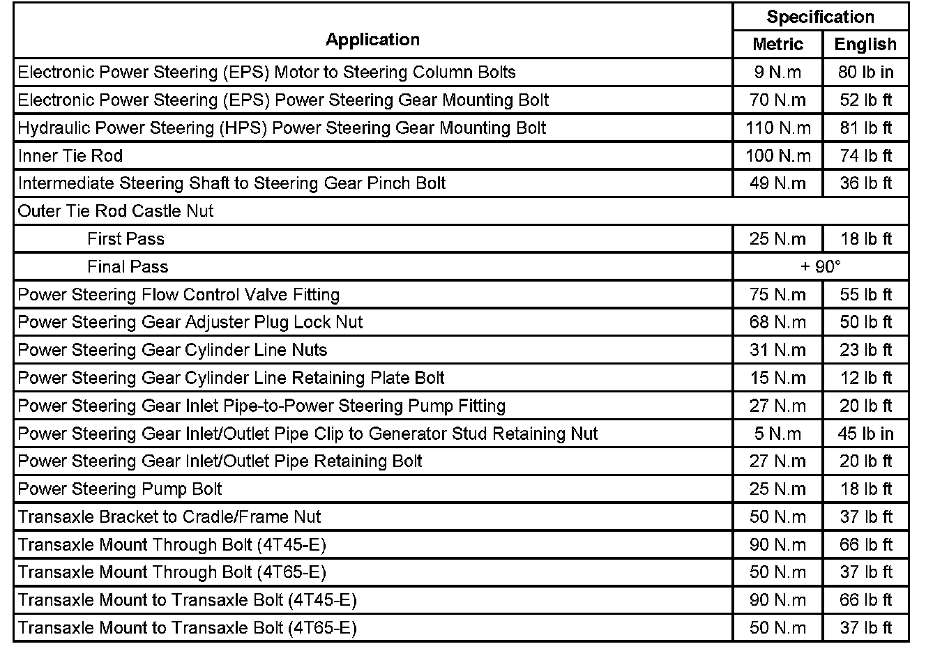 Fastener Tightening Specifications: