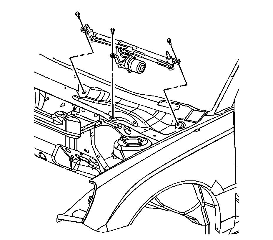 Important: The new wiper drive system module does not include the wiper motor nor the motor support bracket. You must install the old components to the new wiper system module.