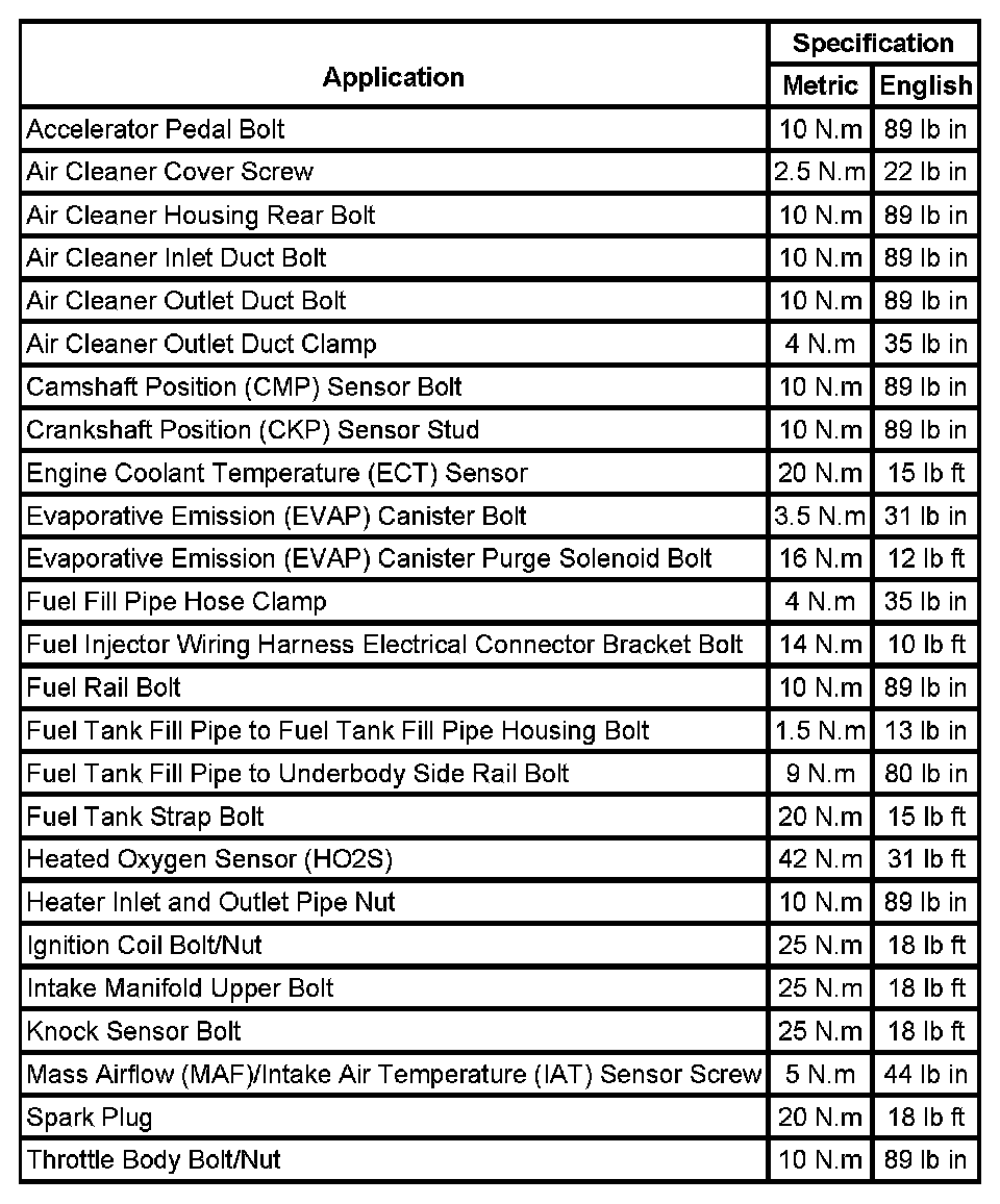 Fastener Tightening Specifications