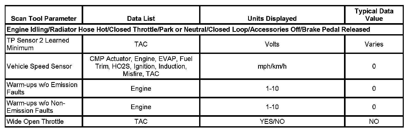 The Engine Scan Tool Data List contains all engine-related parameters that are available on the scan tool. The list is arranged in alphabetical order. A given parameter may appear in any one of the data lists, and in some cases may appear more than once, or in more than one data list in order to group certain related parameters together.