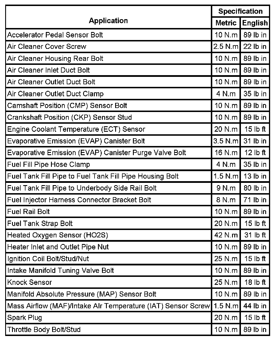 Fastener Tightening Specifications