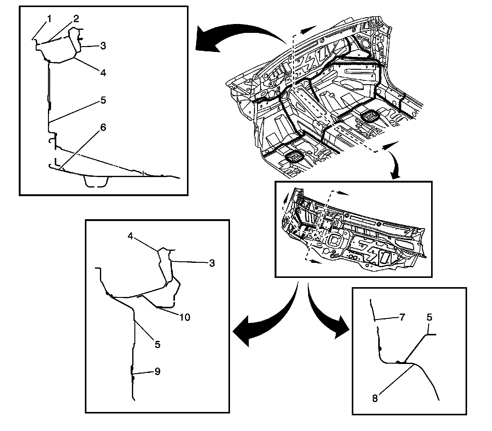Seal the following areas to prevent air leaks, water leaks, and rust.
