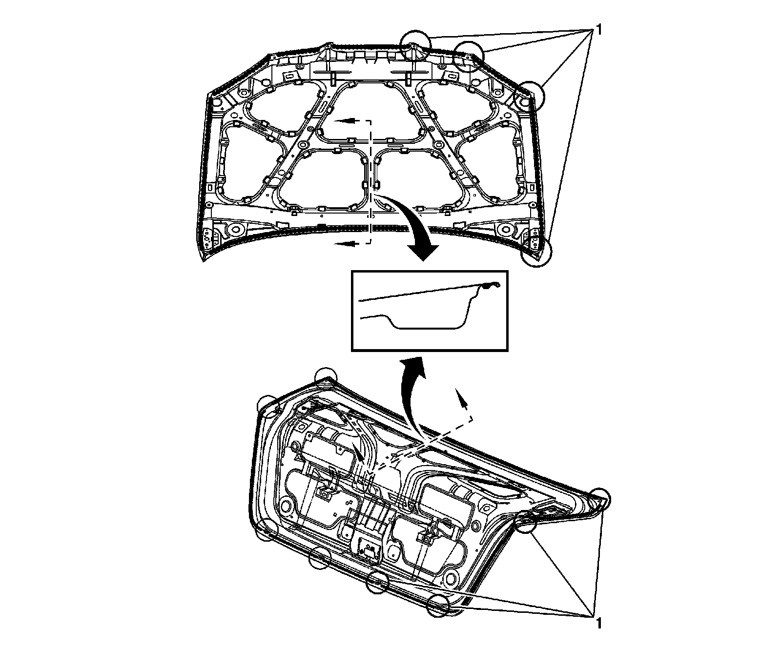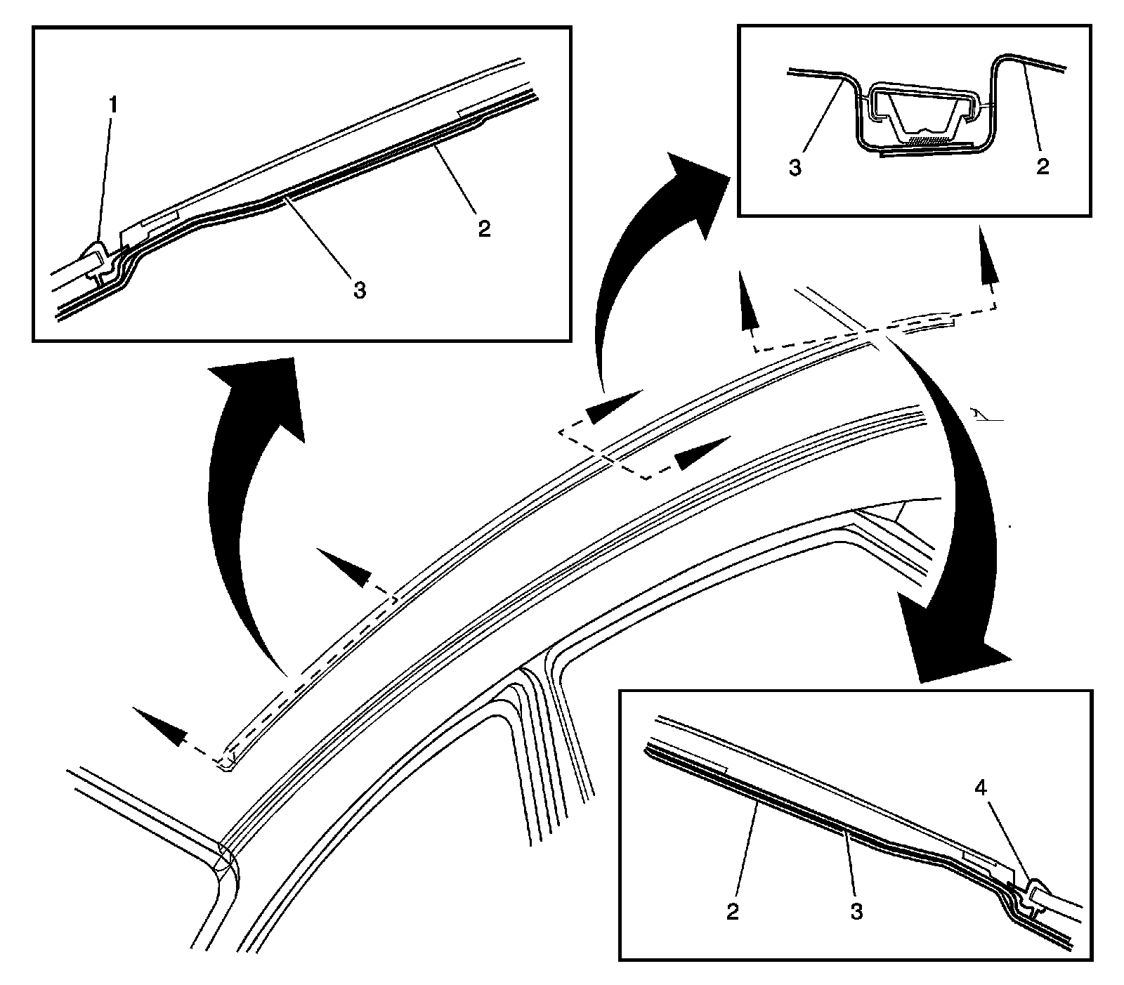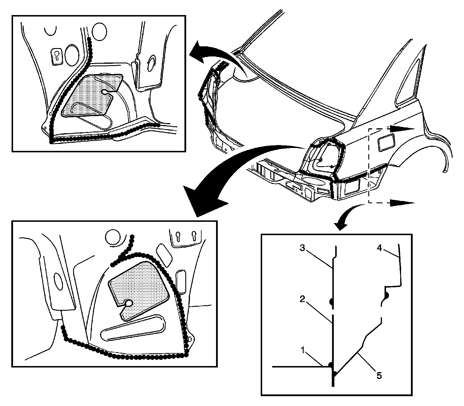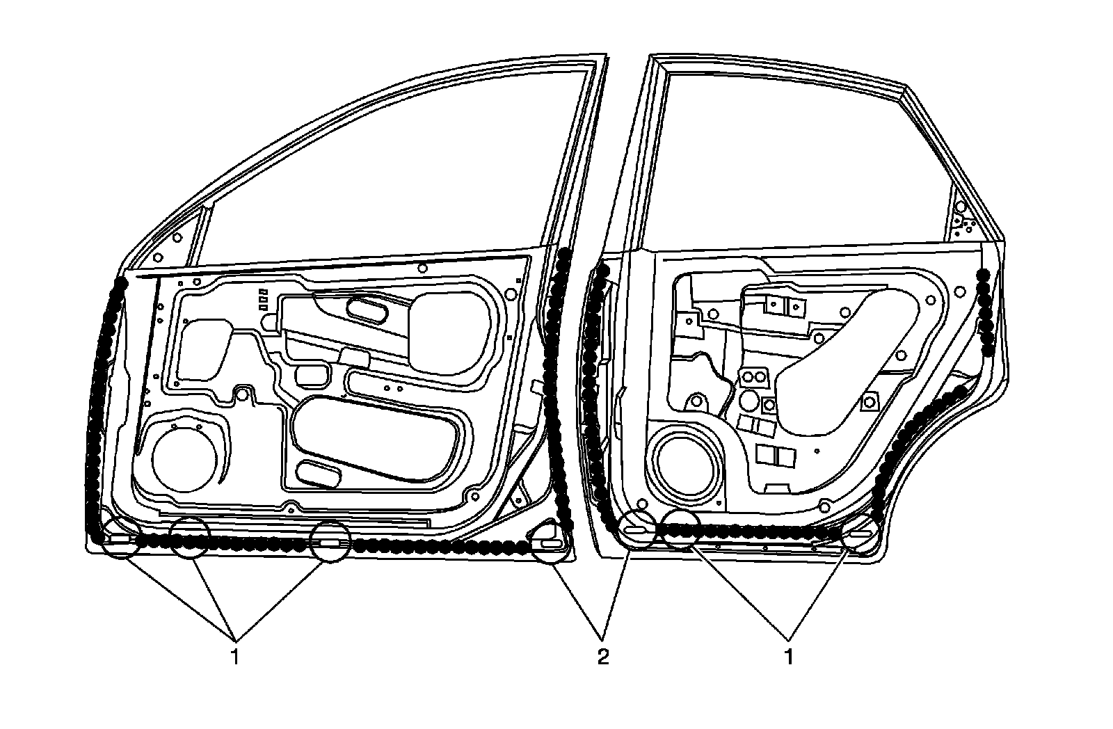 Important: Wiper sealer around the door corners (1). Avoid wiping sealer on the water drain holes (2).