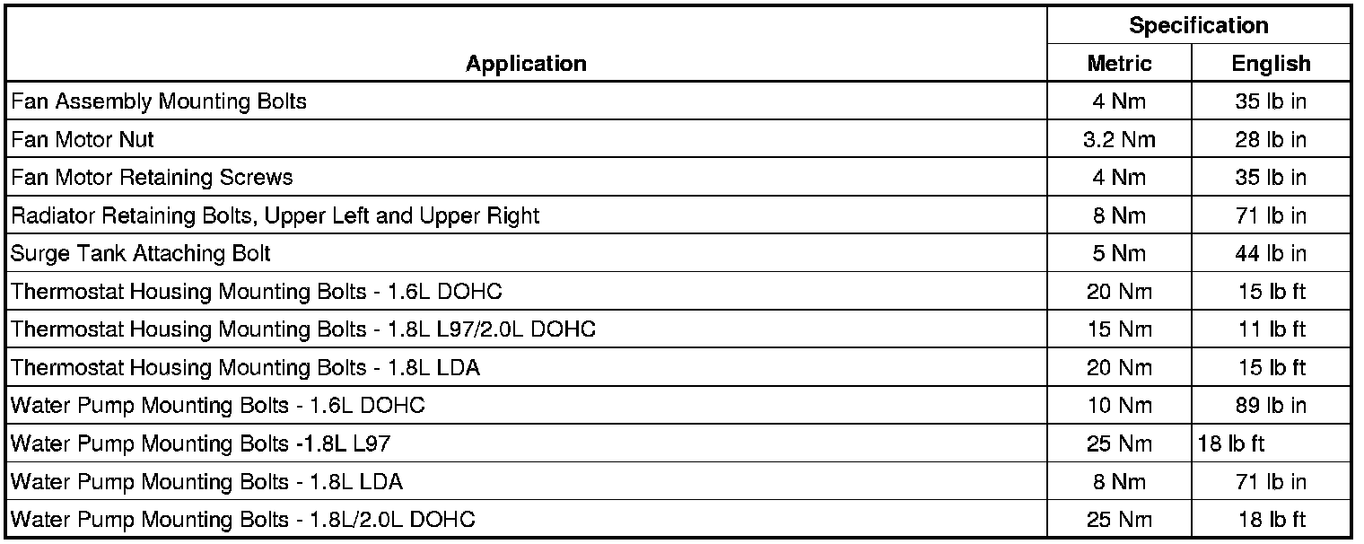 Fastener Tightening Specifications