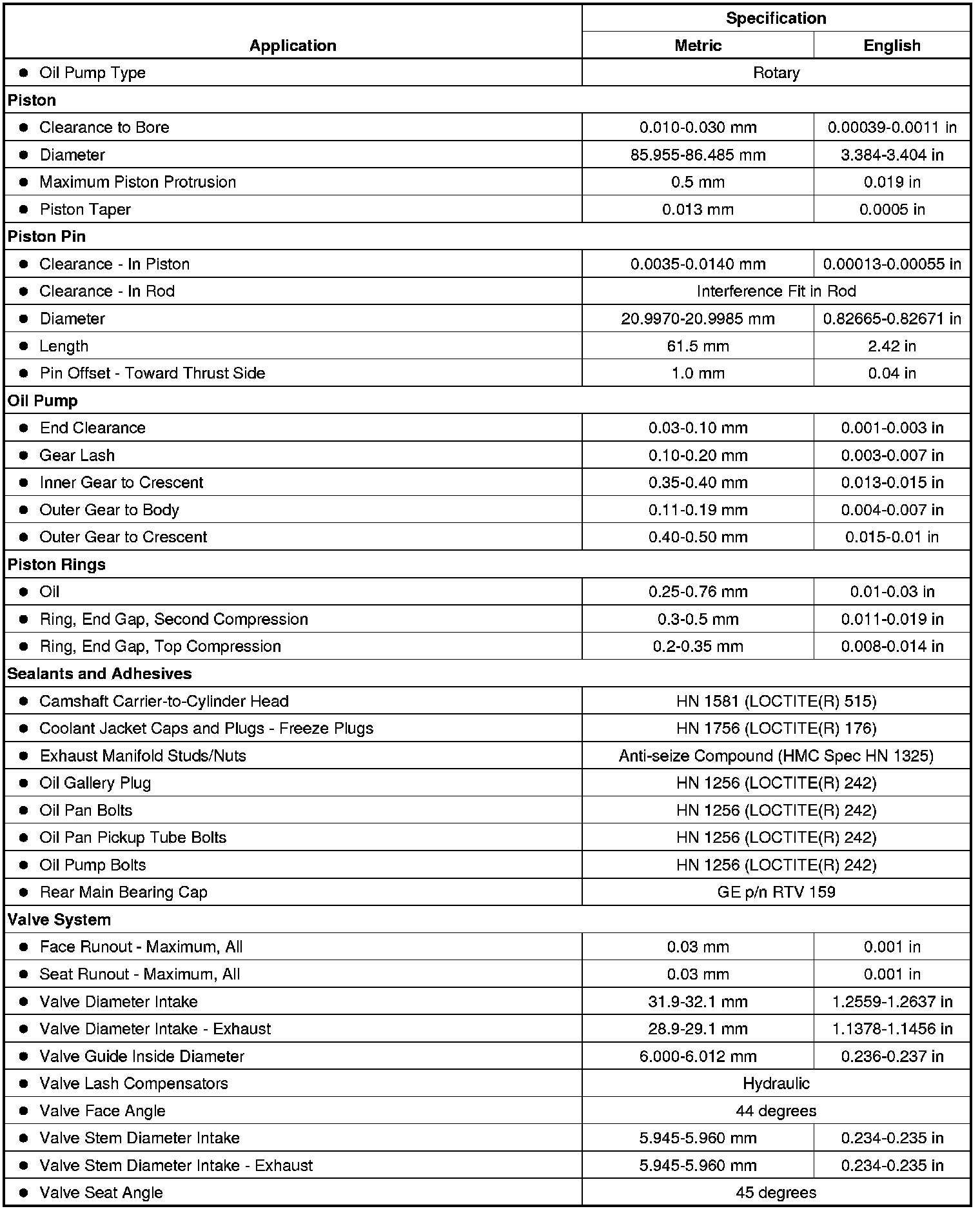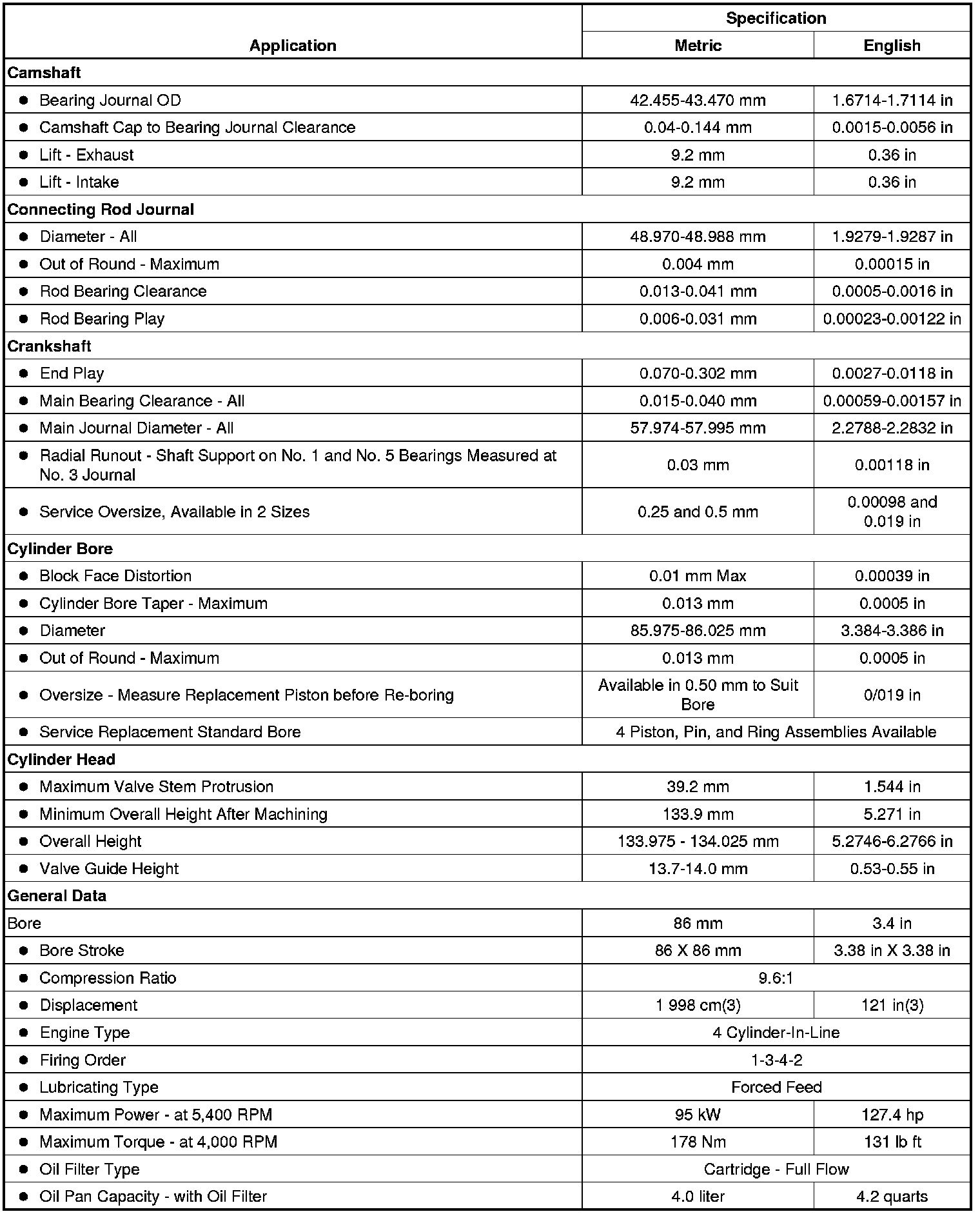 Engine Mechanical Specifications