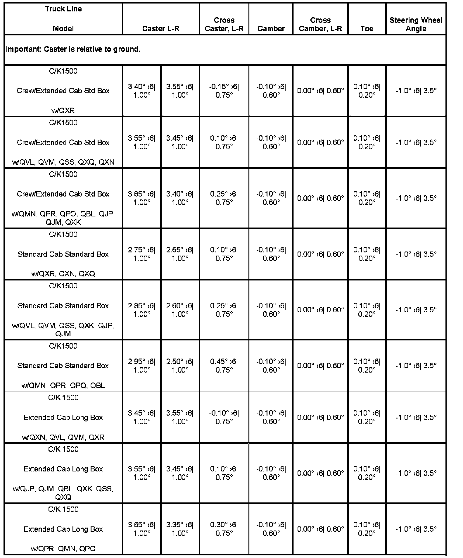 Wheel Alignment Specifications