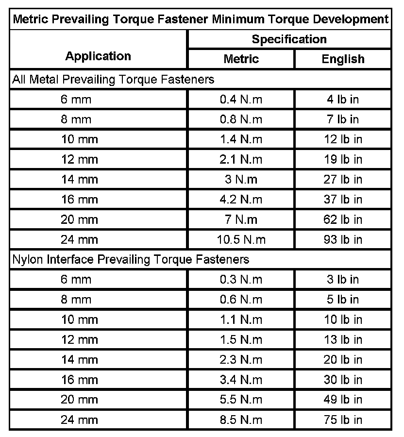 Prevailing Torque Fasteners