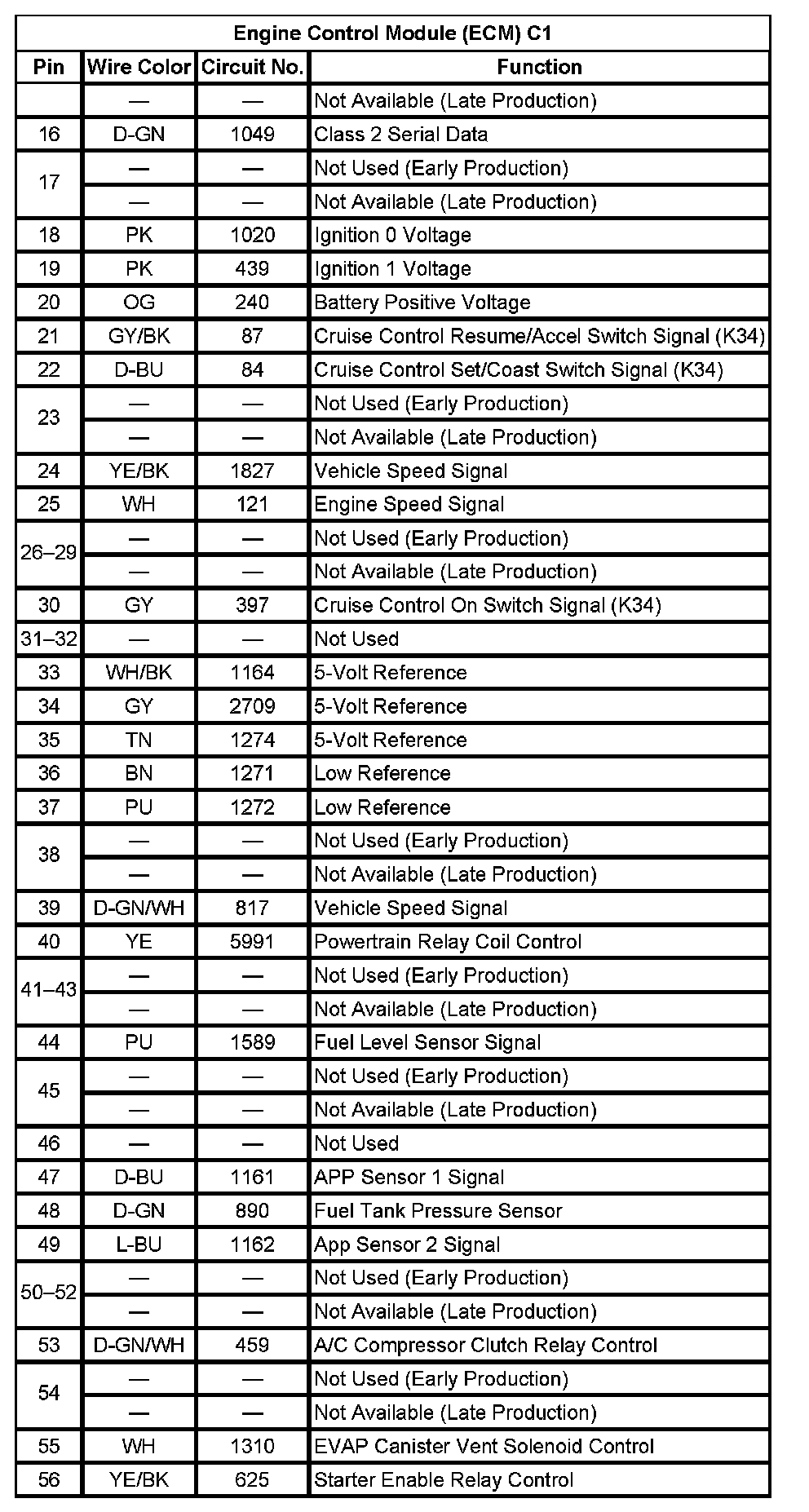 Engine Control Module (ECM) C1 (Pin 16 To 56):