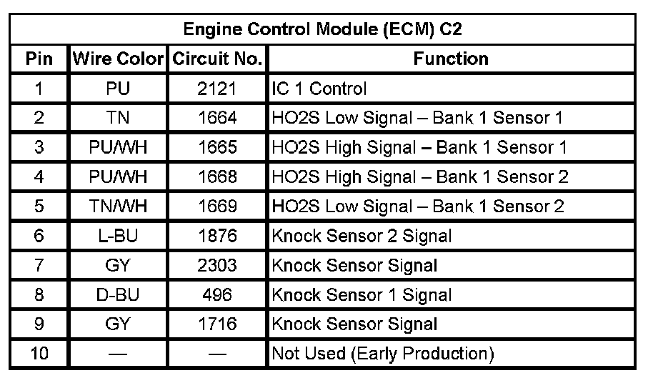 Engine Control Module (ECM) C2 (Pin 1 To 10):