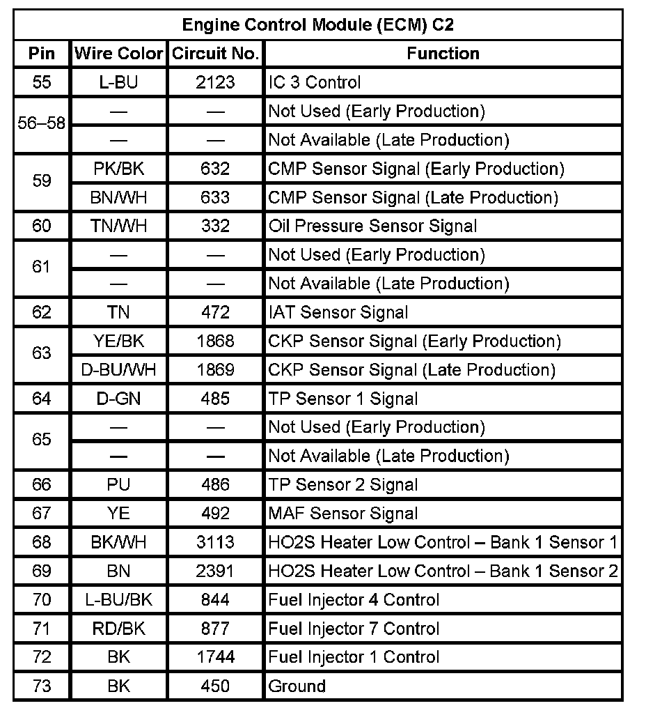 Engine Control Module (ECM) C2 (Pin 55 To 73):