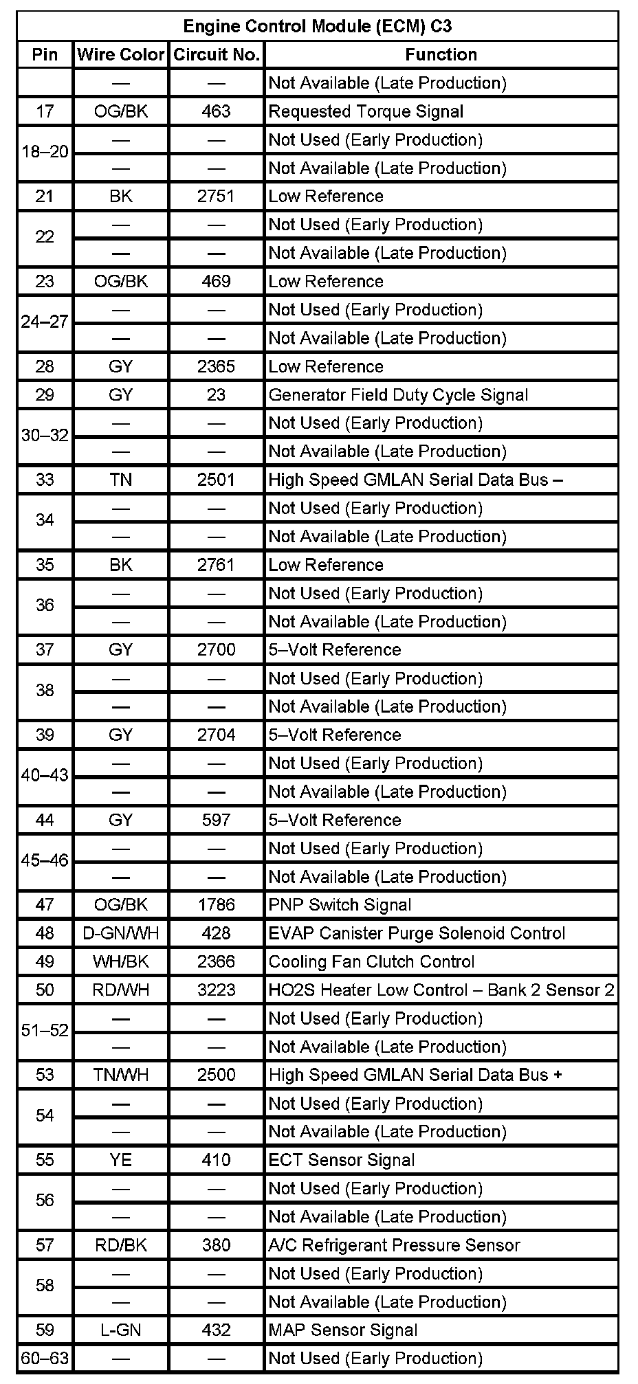 Engine Control Module (ECM) C2 (Pin 11 To 54):