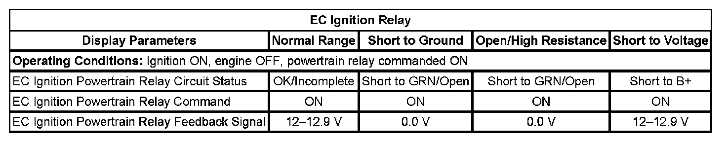 Important: On the scan tool, the powertrain relay is referred to as the EC ignition relay.