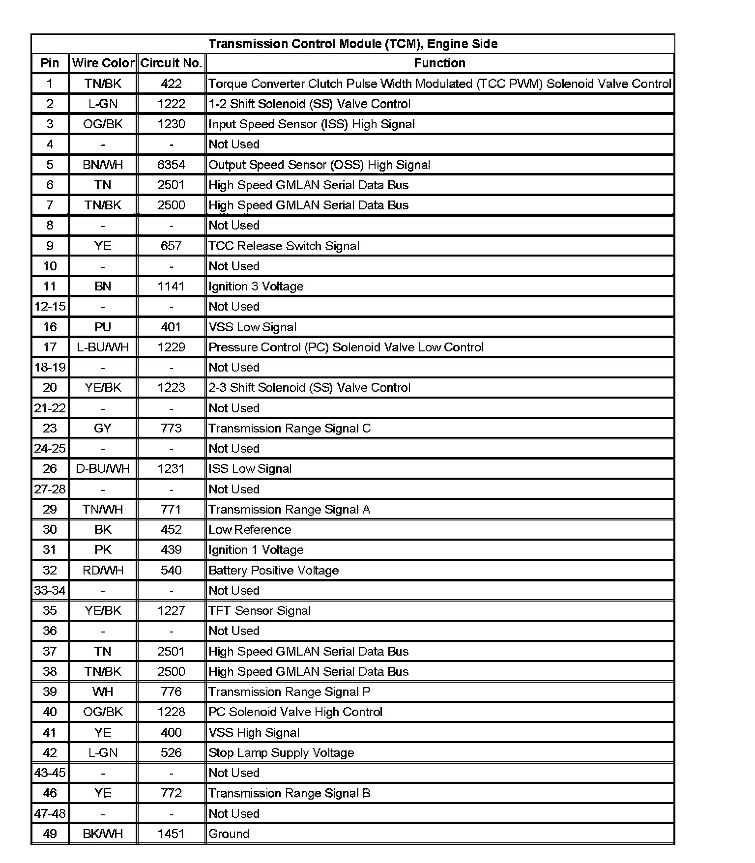 Transmission Control Module (TCM), Engine Side