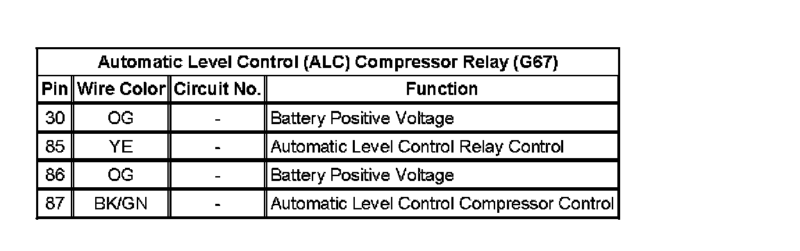 Automatic Level Control (ALC) Compressor Relay (G67):