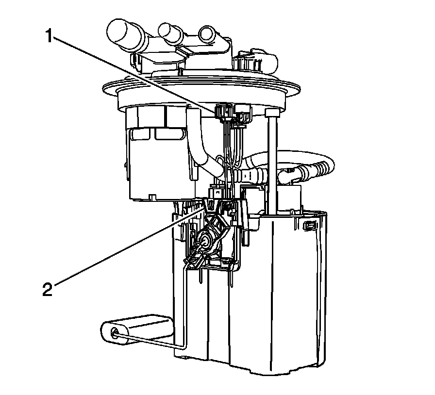 2. Disconnect the fuel level sensor electrical connector (1) from under the cover.