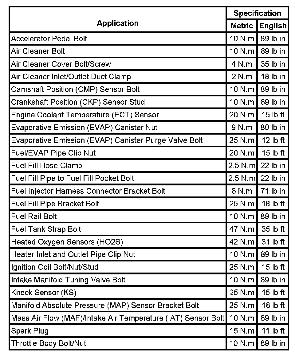 Fastener Tightening Specifications