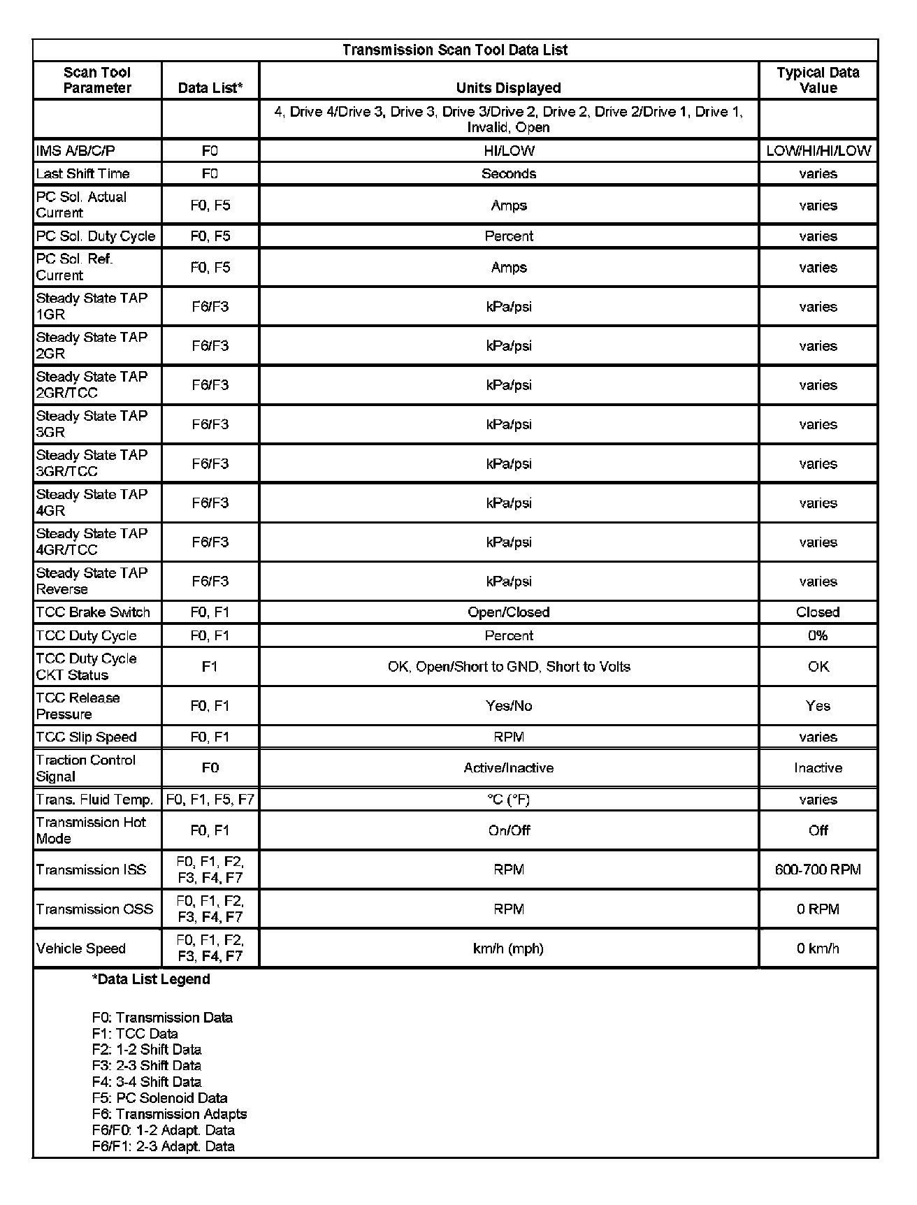 Only the parameters listed below are used in this manual for diagnosing. If a scan tool displays other parameters, the values are not recommended by General Motors for use in diagnosis.