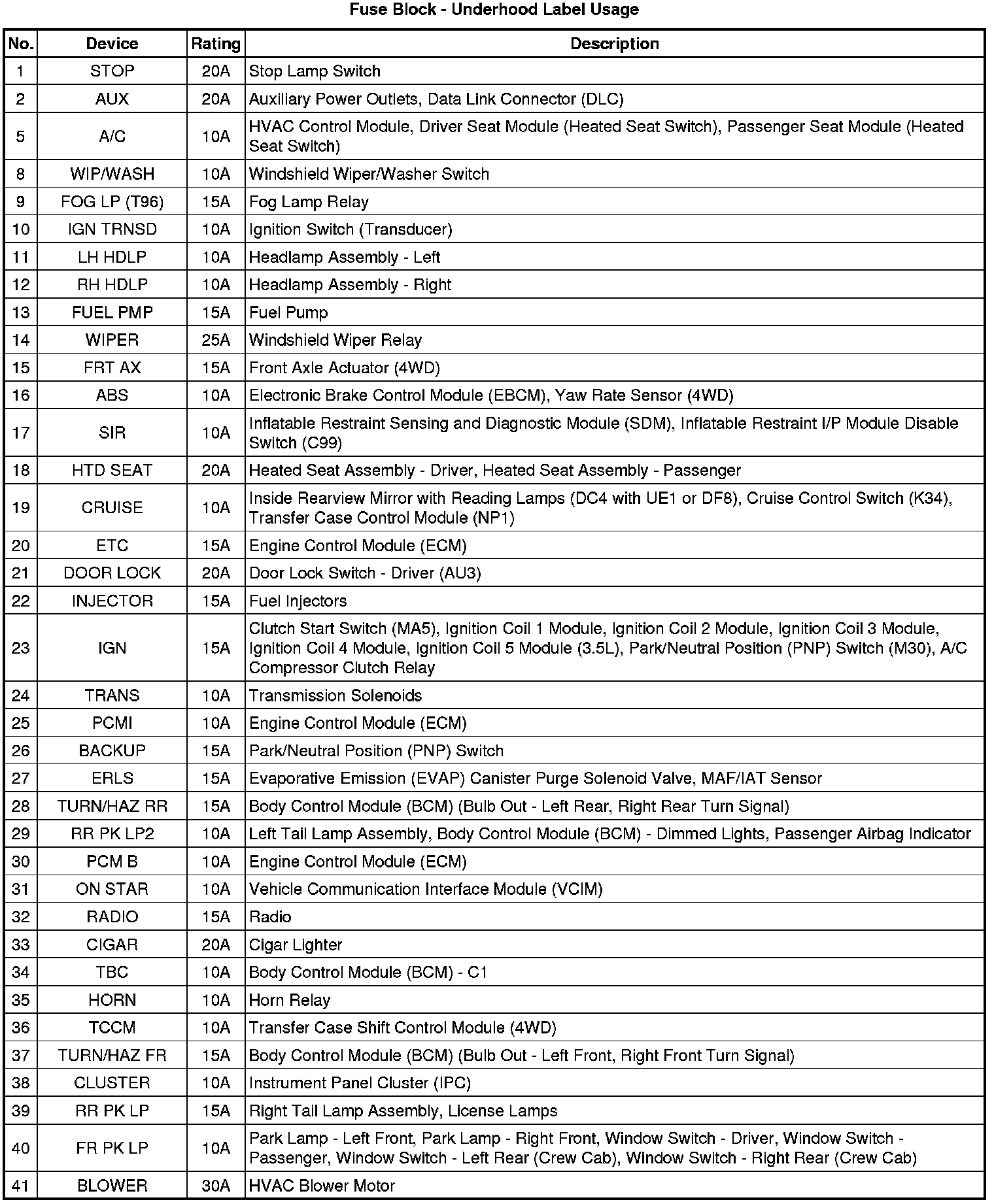 Fuse Block - Underhood Label