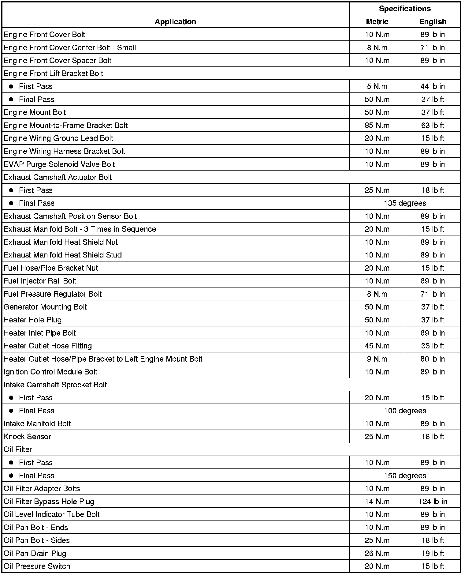 Fastener Tightening Specifications