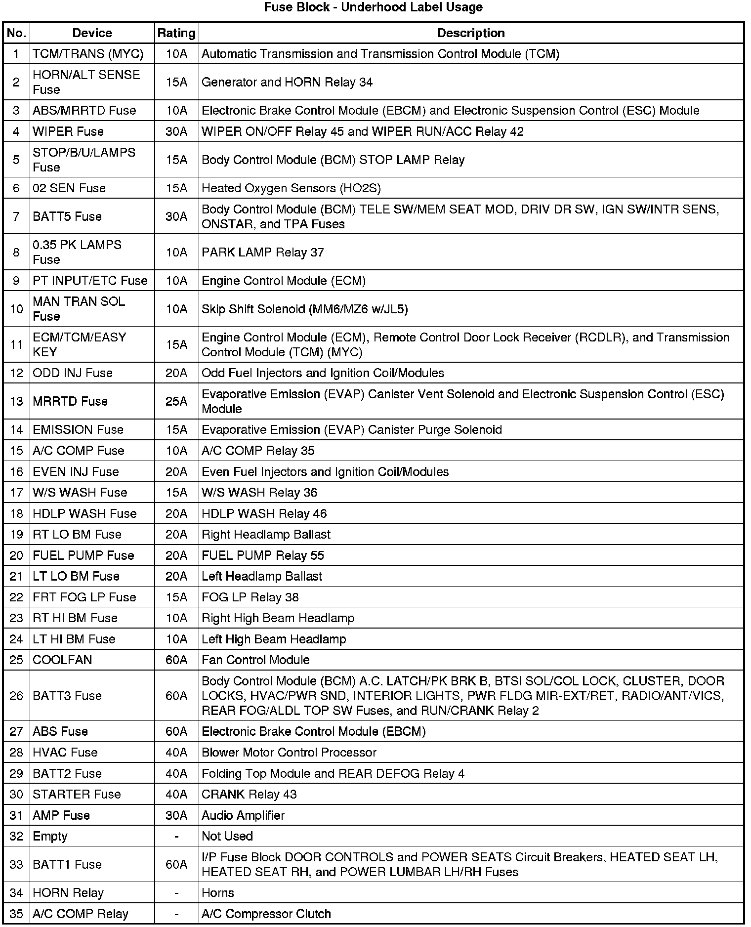 Fuse Block - Underhood Label