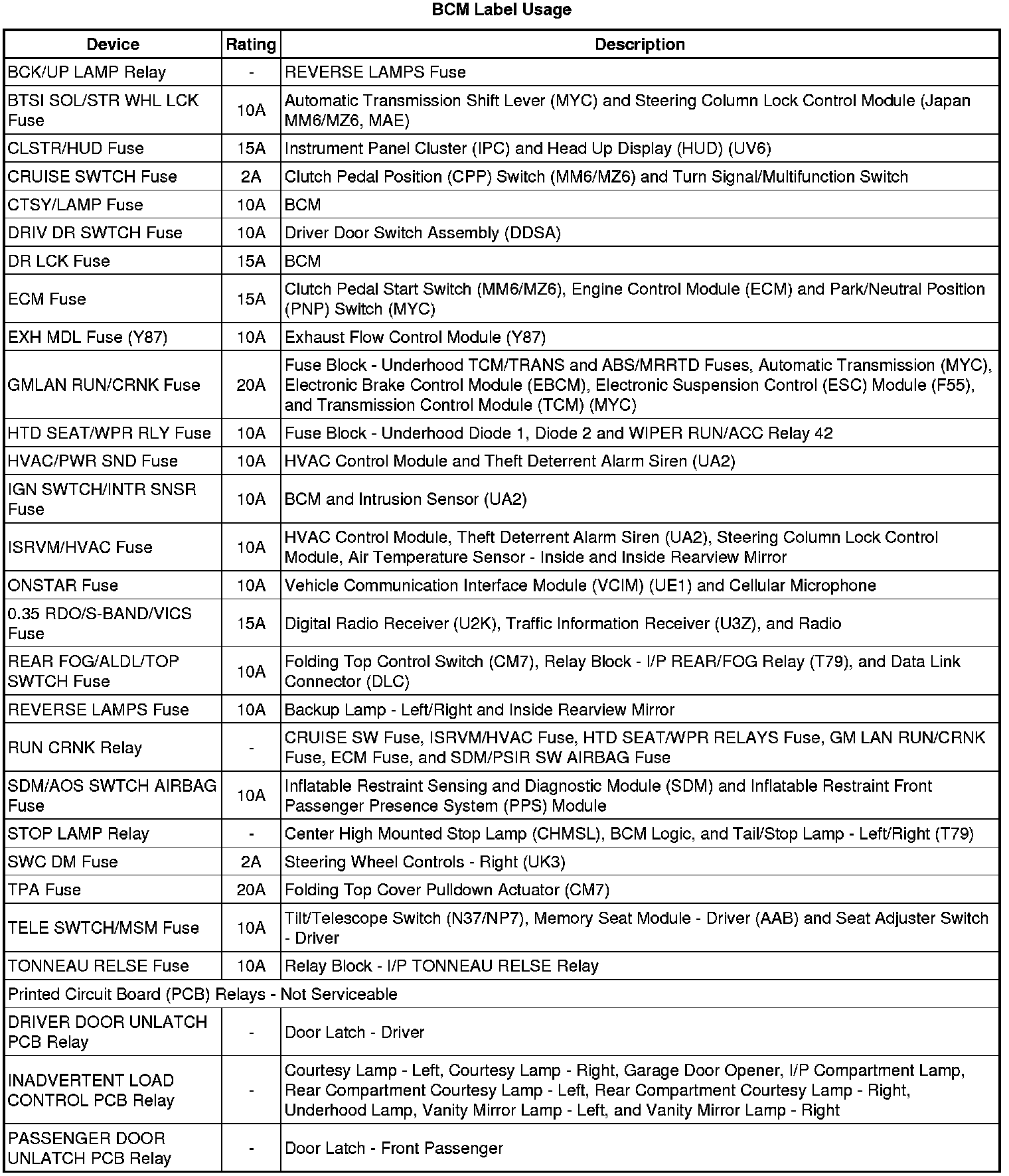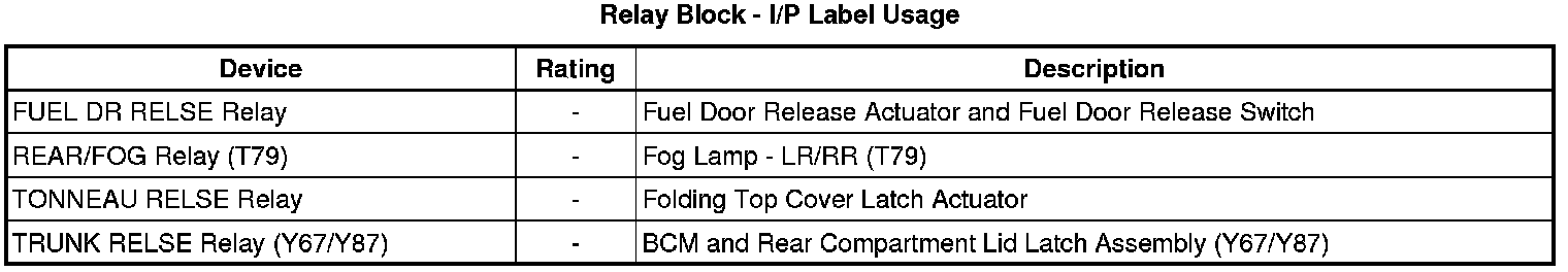 Fuse Block - I/P, Relay Block - I/P and BCM Label