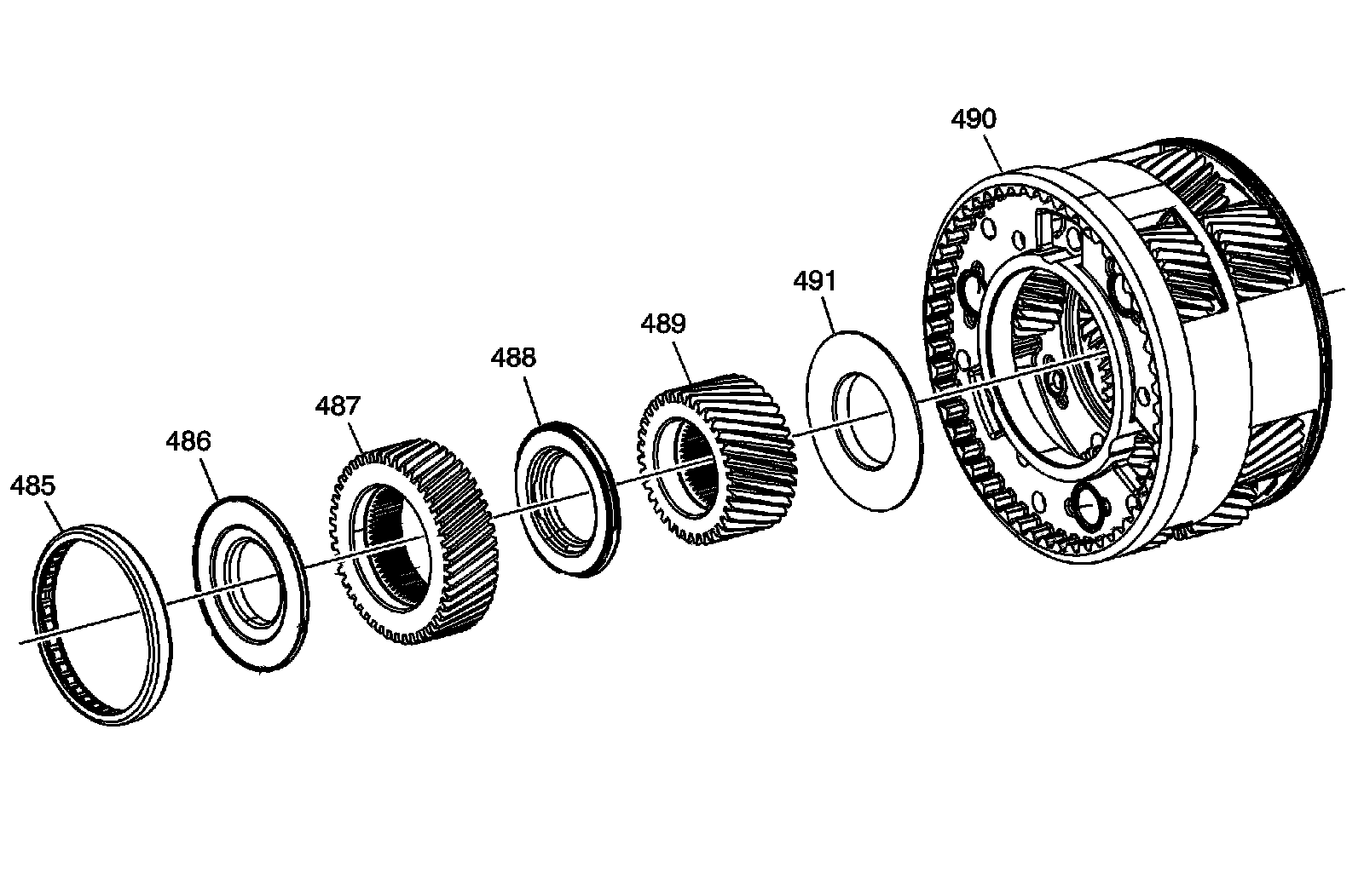 488 - Output Carrier Front Sun Gear Rear Thrust Bearing Assembly