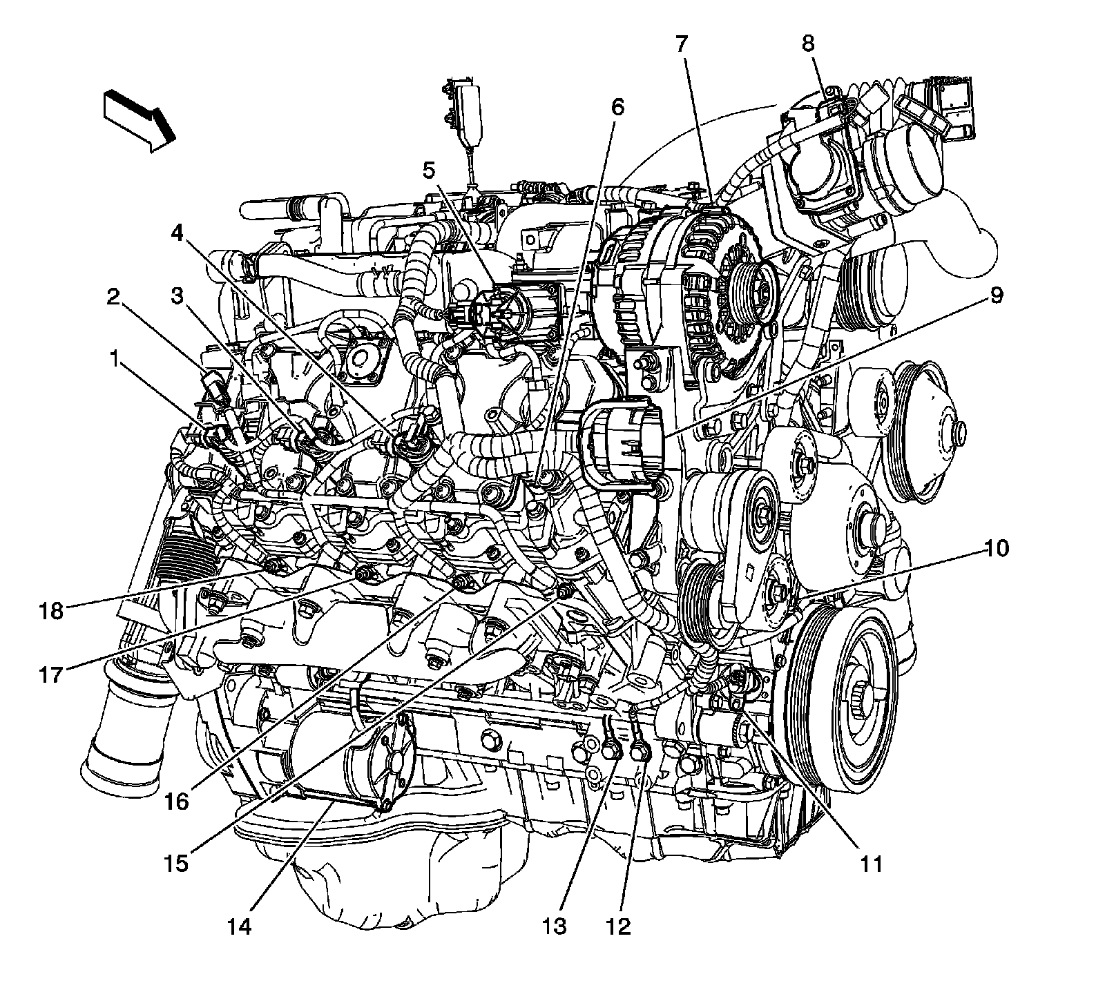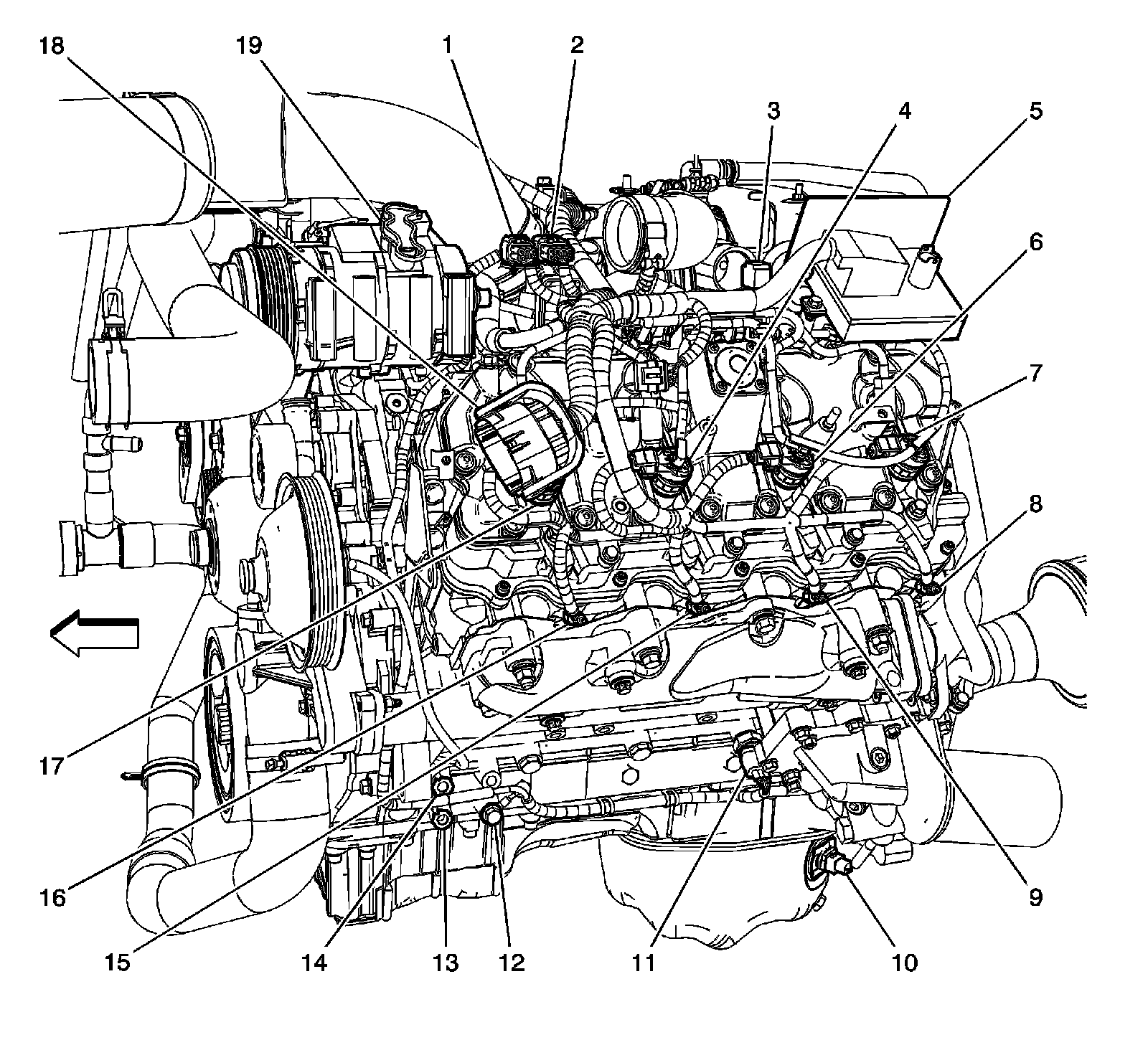 Upper Left Side of the Engine (4.8L, 5.3L, 6.0L)