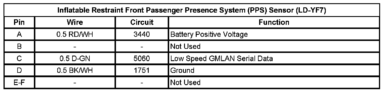 Inflatable Restraint Front Passenger Presence System (PPS) Sensor (LD-YF7)