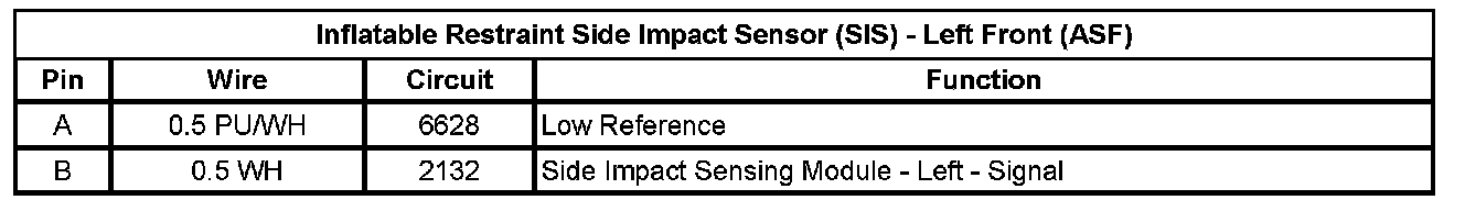 Inflatable Restraint Side Impact Sensor (SIS) - Left Front (ASF)