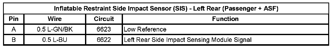 Inflatable Restraint Side Impact Sensor (SIS) - Left Rear (Passenger +ASF)