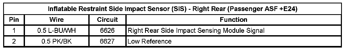 Inflatable Restraint Side Impact Sensor (SIS) - Right Rear (Passenger ASF +E24)