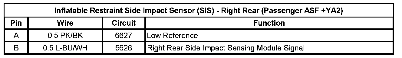 Inflatable Restraint Side Impact Sensor (SIS) - Right Rear (Passenger ASF +YA2)