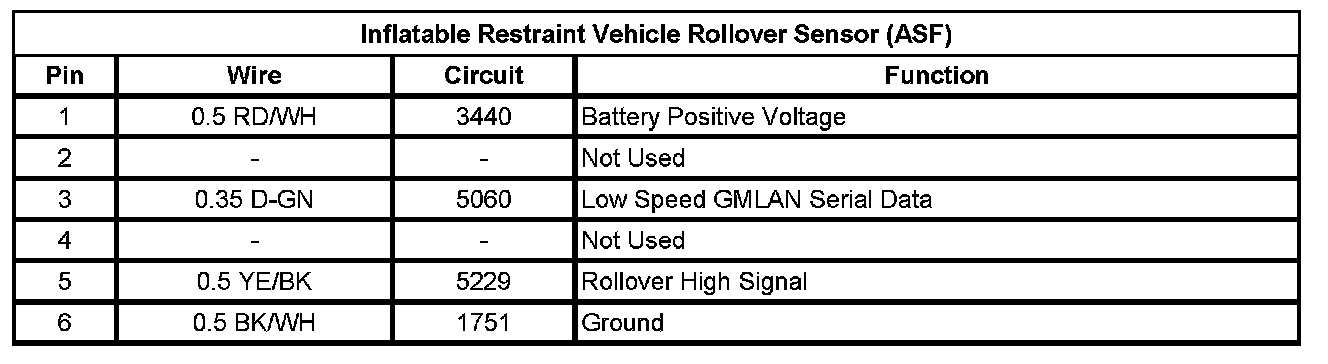Inflatable Restraint Vehicle Rollover Sensor (ASF)