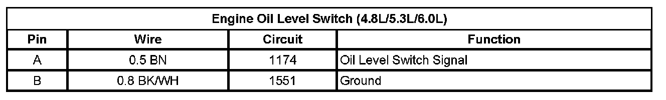 Engine Oil Level Switch (4.8L/5.3L/6.0L)