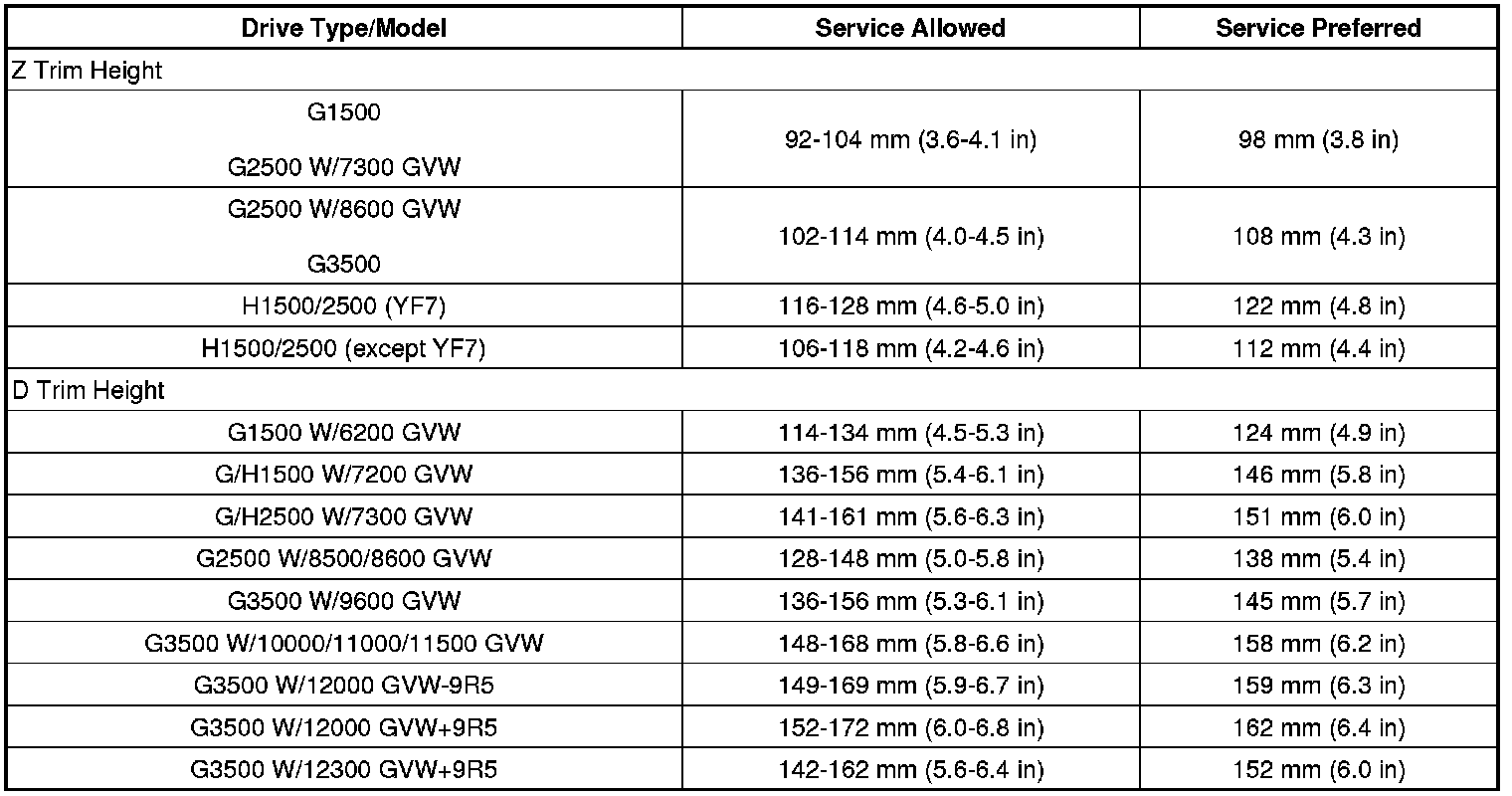 Trim Height Specifications