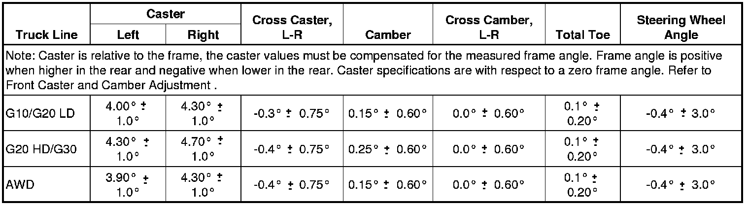 Wheel Alignment Specifications