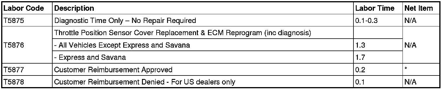 Home >> Chevrolet >> 2008 >> Express 2500 V8-4.8L >> Repair and Diagnosis >> Powertrain Management >> Computers and Control Systems >> Engine Control Module >> Technical Service Bulletins >> Recalls >> Campaign - Throttle Position Sensor Replacement >> Overview