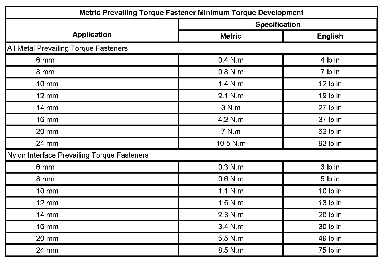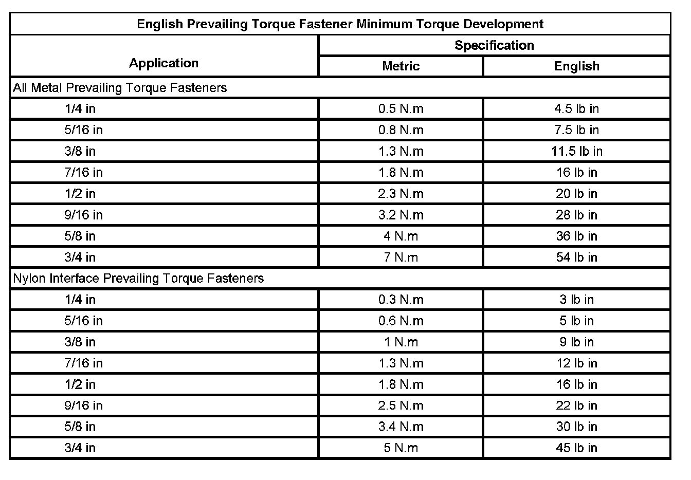 * The fastener develops the specified minimum torque against its counterpart prior to the fastener seating